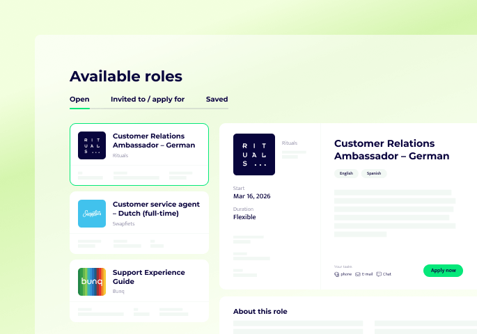 Get matched with roles that fit your languages, experience, and availability, so you can do work that suits